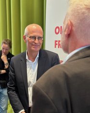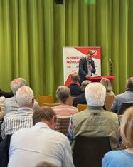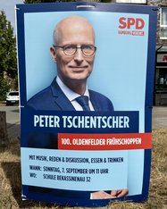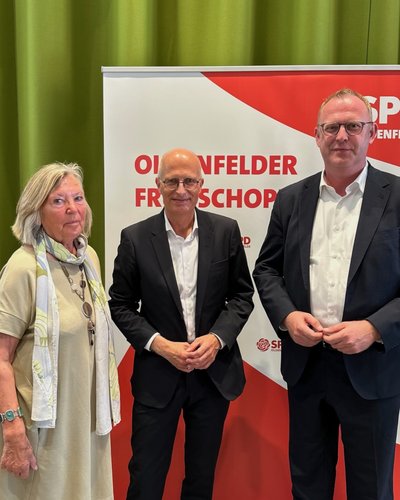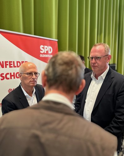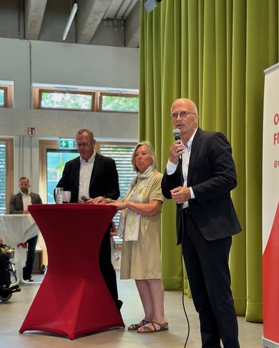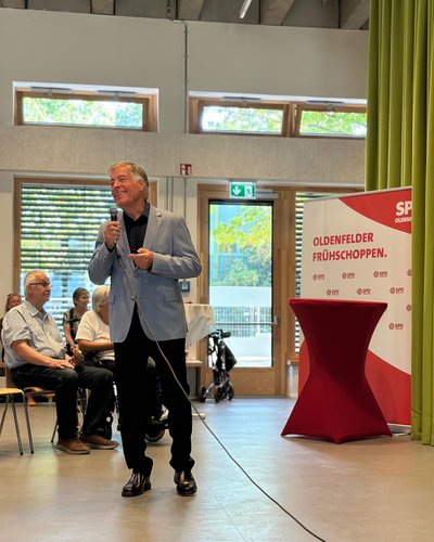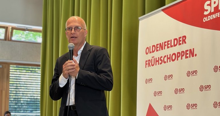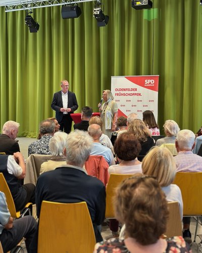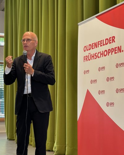 Am Sonntag, 7. September 2025, fand in der Aula der Grundschule Bekassinenau der 100. Oldenfelder Frühschoppen der SPD Oldenfelde statt – und der wurde groß gefeiert: Hamburgs Erster Bürgermeister Peter Tschentscher war dabei, hielt die Festrede und beantwortete Fragen der Gäste. Es gab Musik vom Rahlstedter Duo Faltenreich (Regine Münchow und Helmut Stuarnig), Grußworte von Andreas Dressel, Margarethe Stolle, Ekkehard Wysocki und Berndt Wagner, einen Rückblick auf 99 Oldenfelder Frühschoppen durch Gerd Herzberg – und nicht zuletzt zu essen und zu trinken. 140 Gäste ließen sich dieses besondere Ereignis nicht entgehen.